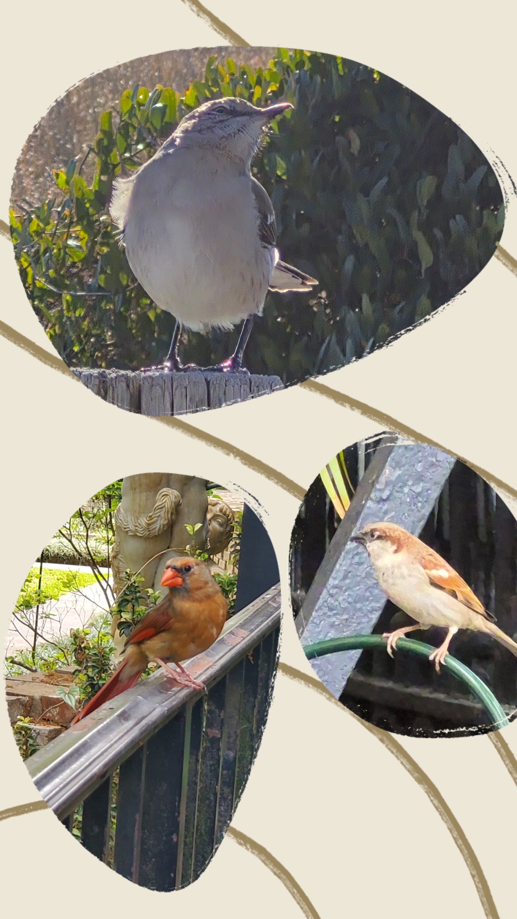 When we sat down to eat it flew near, perched on the filigree rail amid the garden fertilized with blood and bones— the beauty of the female cardinal. The gray-green of her wings, a gradient of understated hues, the way the red of her tailfeathers catch in just the right light. She tilted her head at me, as if to say, “What do you have for me?” but by then I had given so much I ate every last drop. I wonder now if she was a mother, looking to feed her chicks, or if she was just looking to feed herself. Maybe she just wanted to be seen. * At the beignet café, we sat, the sounds of jazz floating through the air. Powdered sugar rose on the fetid wind, and the house sparrow perched on the wrought-iron chair, scattering it like dust. She cocked her head at the neighboring table: “What do you have for me?” She did not ask me. I had nothing to break apart and offer. * At the turn of the new year, I rose early from my mother’s house and went to the shore alone. I sat in the cold air, breathing, admiring the perfect s-curves of the meandering river leading to the sea. I was filled with all the things we often are— doubts and dreams, hope regardless. It came and perched on the post, watched me close, then raised its head, tracing the wind— a messenger. I had no food for this mockingbird, only the pen and notebook in my hands— and maybe that was the point. Maybe it isn’t time to feed. Maybe it’s time to speak.